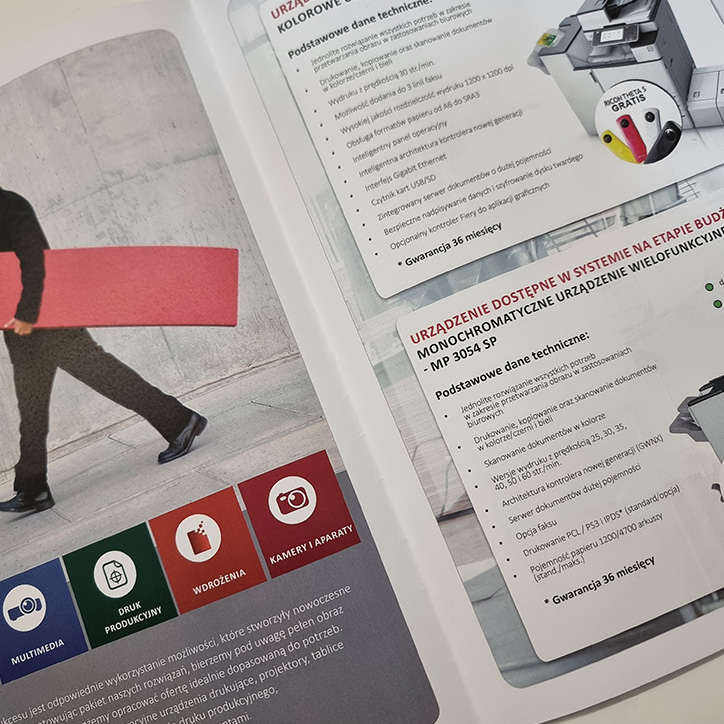 Projekt graficzny oraz przygotowanie do druku różnych folderów firmy Ricoh Polska Sp. z o.o.